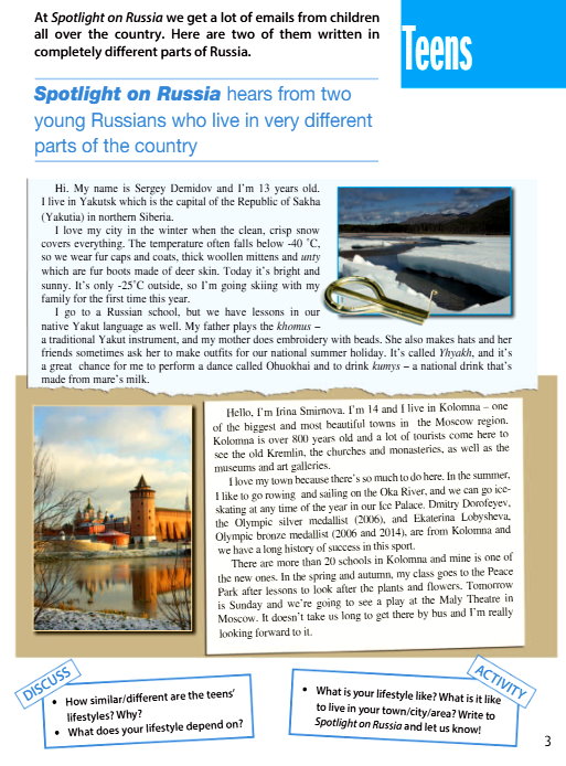 В Spotlight on Russia мы получаем много писем от детей со всей страны. Вот два письма от детей из совершенно разных уголков России.