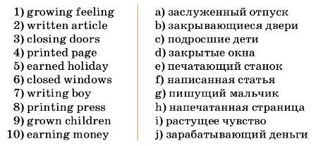 b) The question asked by the child surprised the grown-ups. – Вопрос, заданный ребёнком, удивил взрослых. - a) The pupils preparing for the examinations were given some extra classes. – Учащимся, готовившимся к экзаменам, были предоставлены дополнительные занятия.