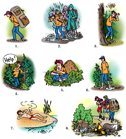 6) Under no circumstances leave trash in forest. – Ни в коем случае не оставляйте мусор в лесу.