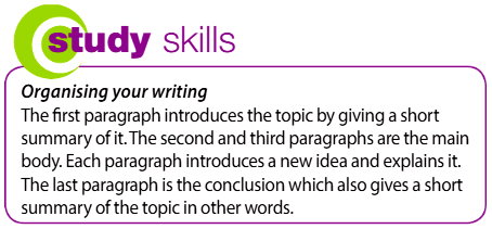 Первый параграф представляет тему, давая краткое его содержание. Второй и третий параграфы составляют основную часть. Каждый параграф представляет новую идею и объясняет ее.