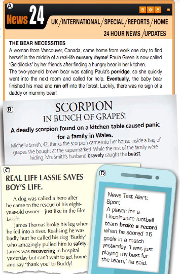 D. Новостное сообщение: Спорт. Игрок футбольной команды Линкольншира побил рекорд, забив 16 голов во вчерашнем матче. «Я просто старался изо всех сил ради команды», − сказал он.