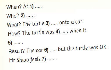 Mr Shiao: I know! I stopped the car and got out. The turtle was lying on the ground and two people were running towards it! They looked very worried! — Я знаю! Я остановил машину и вышел. Черепаха лежала на земле, а к ней бежали два человека! Они выглядели очень встревоженными!