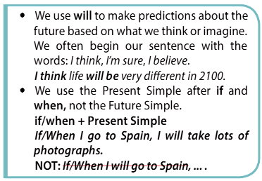 Мы используем will для предсказаний о будущем, основанных на том, что мы думаем или представляем. Мы часто начинаем предложение со слов: I think (Я думаю), I’m sure (Я уверен), I believe (Я верю).
