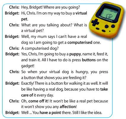 1. Bridget is going to buy a virtual pet. − Бриджит собирается купить виртуального питомца.