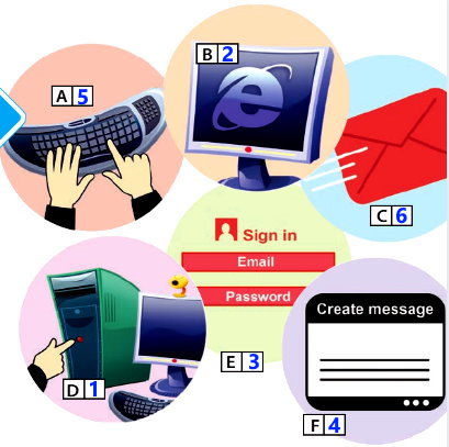 Ответ: These pictures show the process of sending an e-mail. − На этих изображениях показан процесс отправки электронного письма.