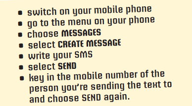 B: Select ‘Create a message’ and write your SMS. Make sure you click on ‘send’ when you finish writing. − Выбери «Создать сообщение» и напиши SMS. Убедись, что ты нажал «отправить», когда закончишь писать.