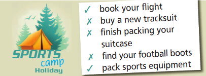 - ✓ pack sports equipment − упаковать спортивный инвентарь