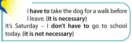 - It’s Saturday I don’t have to go to school today, (it is not necessary) − Сегодня суббота, и мне не нужно идти в школу (нет необходимости)