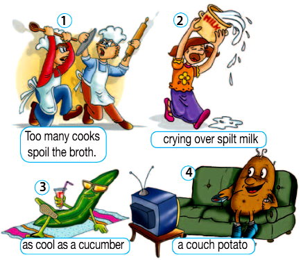 - Идиома − группа слов, имеющих разные значения, когда используются вместе, и когда они используются раздельно.